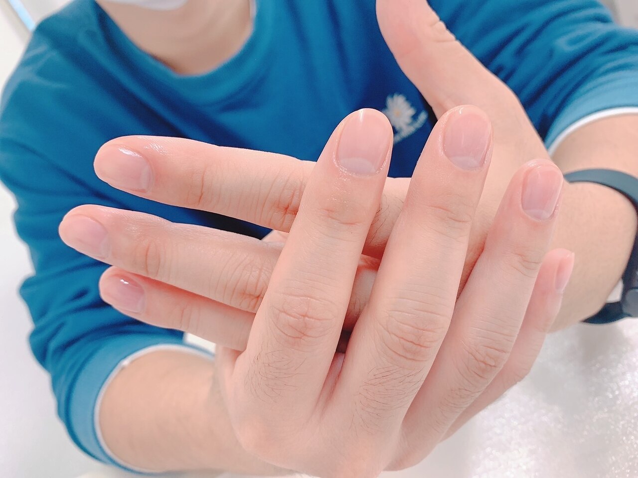 爪の状態やご希望に応じて、爪をさらに磨いてツヤを出したり、薄い爪の場合はコーティングしたりします。艶が気恥ずかしい方にはマットな仕上がりも対応していますのでご安心ください。