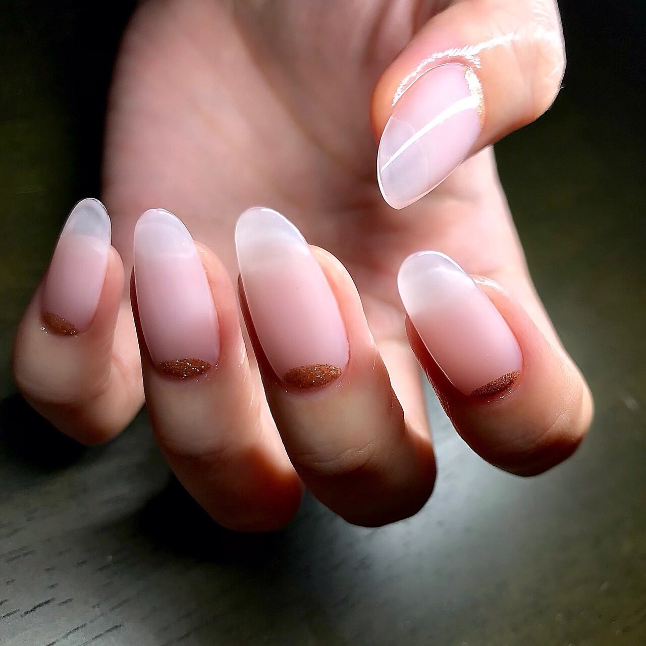 爪の状態やご希望に応じて、爪をさらに磨いてツヤを出したり、薄い爪の場合はコーティングしたりします。艶が気恥ずかしい方にはマットな仕上がりも対応していますのでご安心ください。