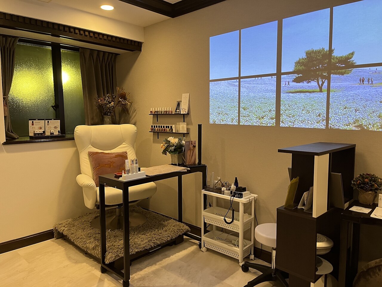 月一回くらいで通ってます、爪がツヤり形が整ってきました ネイル行ったことがなくて抵抗ありましたがリラックスできる雰囲気と会話にもハマりました、本当に爪が綺麗に変わっていってビックリです 壁にスクリーンがあって好きな映像や音楽を流してくれます ※